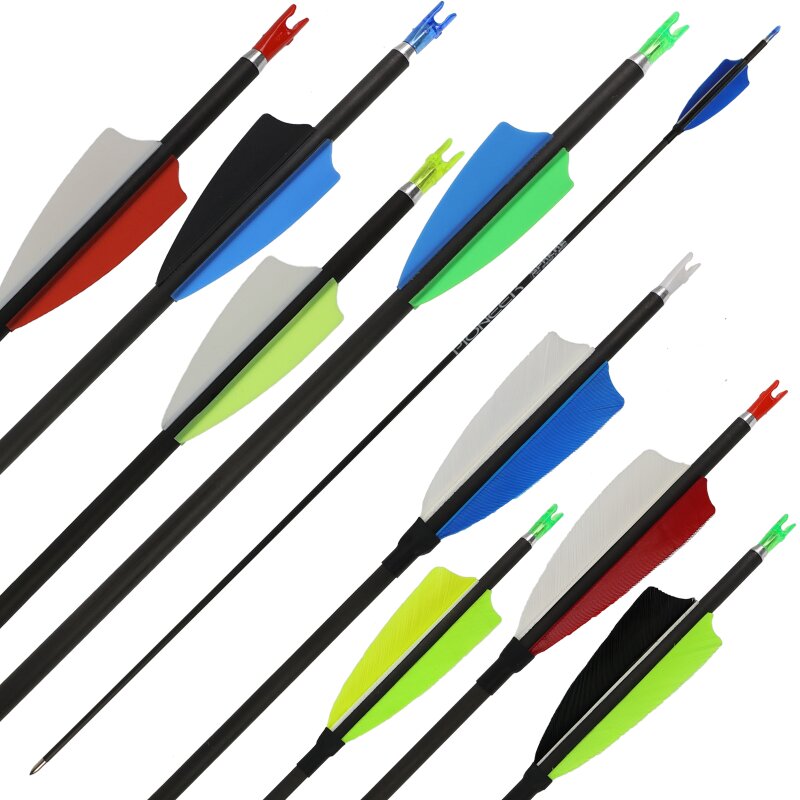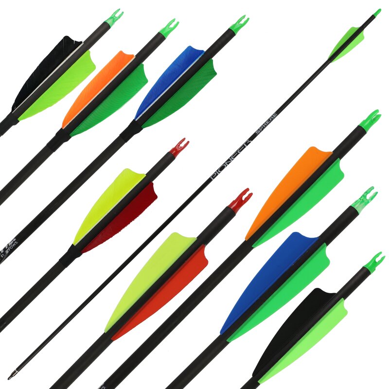 In our product range, there are arrows made from different materials for short- as well as long distances. Starting at wooden arrows, which have been used by archers worldwide for centuries, we also offer arrows made from aluminium, fiberglass or carbon. Fiberglass arrows are perfect for beginners since they are durable and do not bend. Aluminium offers a large selection range for beginners as well as advanced archers and is also suitable for archery tournaments. Carbon arrows offer the archer high precision and are even more durable. The best material for experienced archers are aluminium-carbon arrows, which unite the best characteristics of both materials and thereby gain an excellent arrow flight. All of these arrows are of course offered in various lengths and spines.